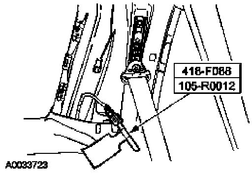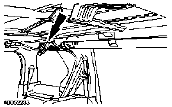 12. Engage the rear tether bracket assembly hook to the C-pillar sheet metal.