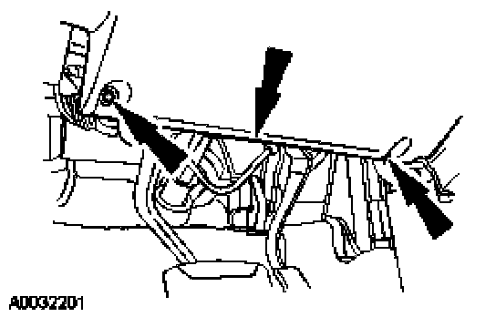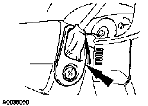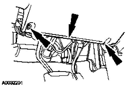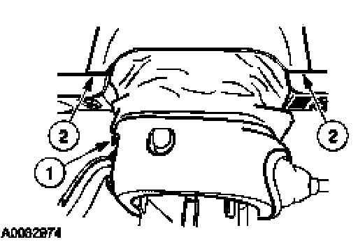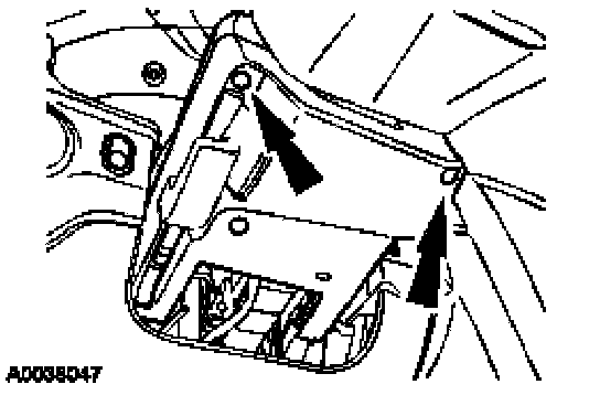 1. Lift where shown, releasing the retaining clips and rotate the upper steering column trim panel out of the instrument cluster finish panel.