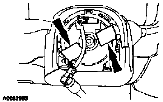6. Apply two strips of masking tape across the clockspring to prevent accidental rotation when the clockspring is removed.