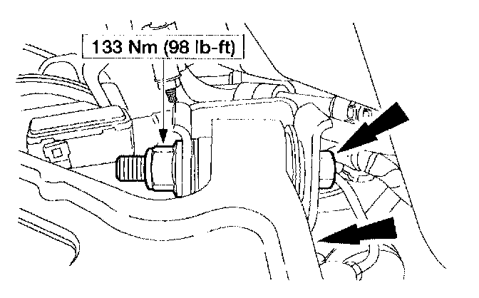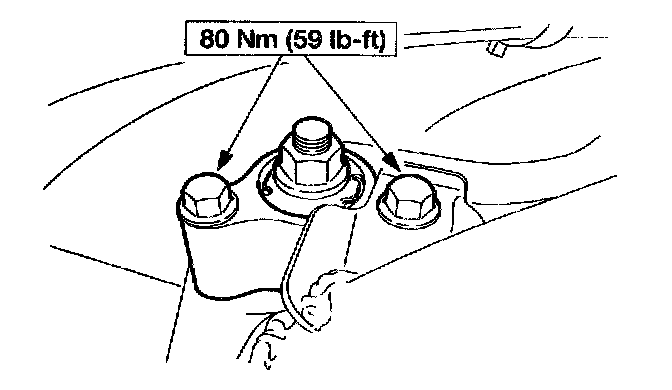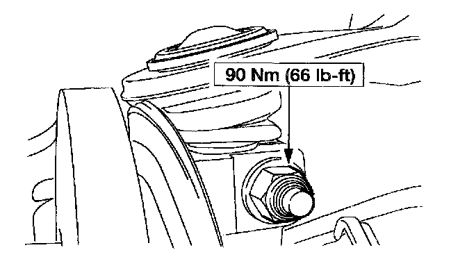 NOTE: Snug the upper arm forward pivot nut and bolt. Do not tighten to specification until the installation procedure is complete and the vehicle is at curb ride height.
