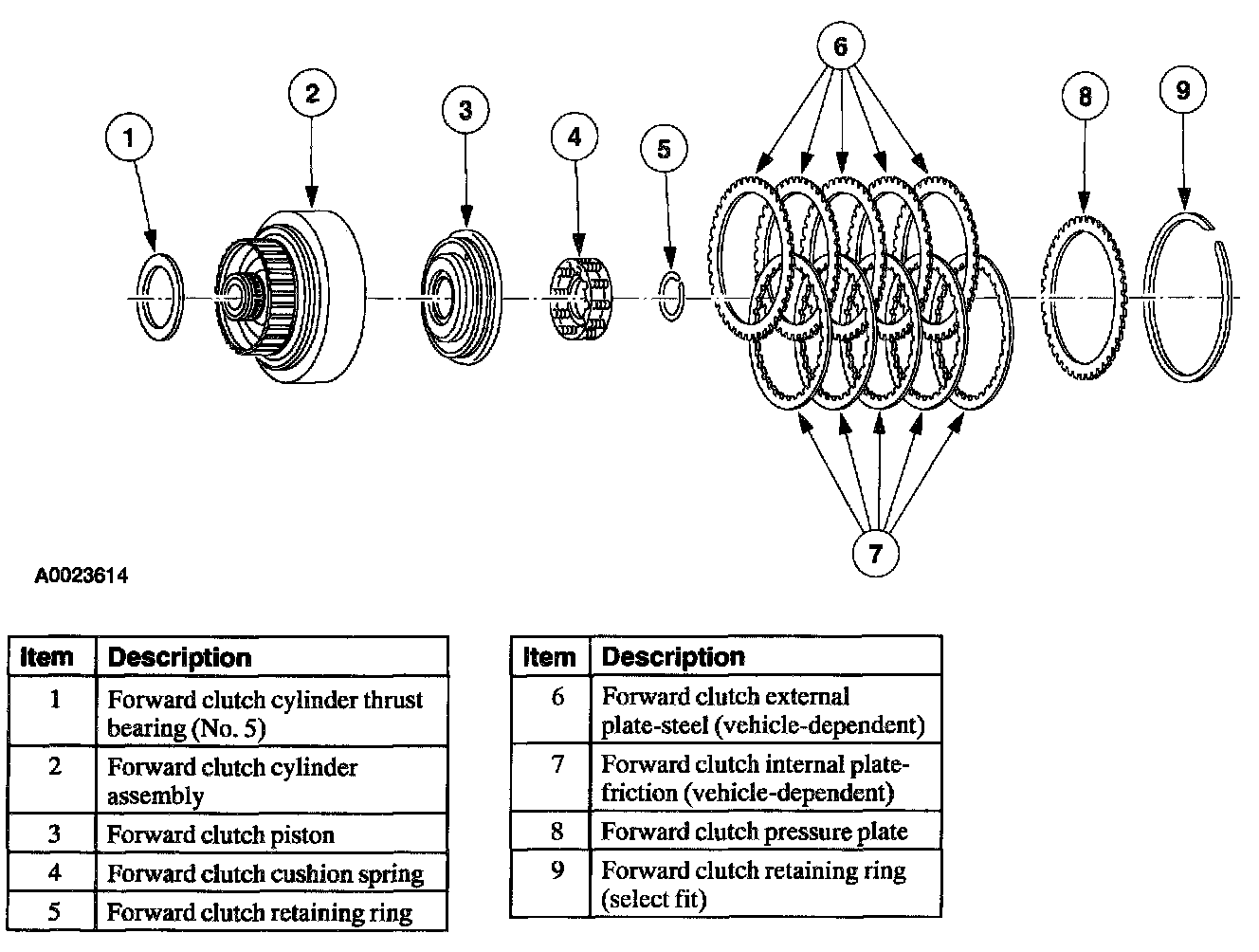 Inspect the forward clutch plates for wear, damage or overheating.