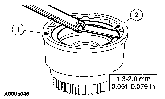 2 Using a feeler gauge, check the gap between the forward clutch retaining ring and the forward clutch pressure plate.