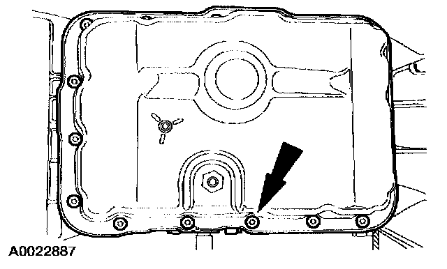 8. NOTE: The transmission fluid pan gasket is reusable, clean and inspect for damage. If not damaged, the gasket should be reused.