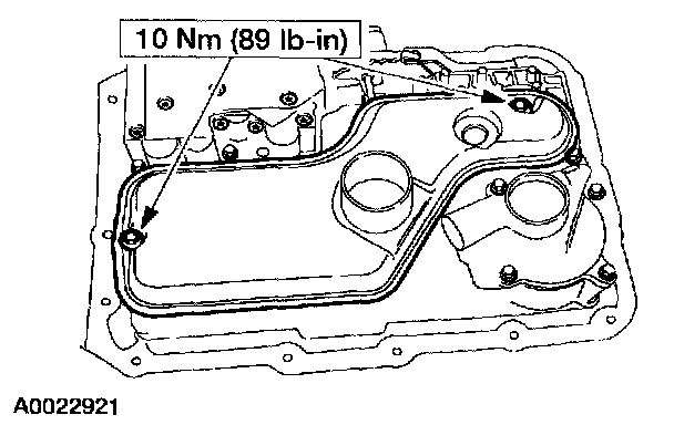 Remove the 16 transmission fluid pan screws, fluid pan, and gasket.