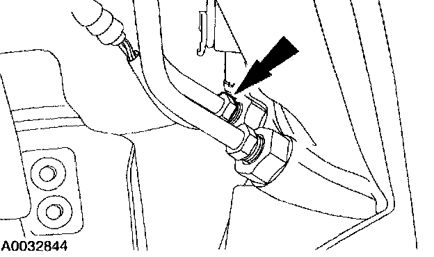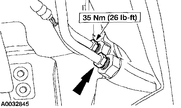 6. Remove the cooler return line (upper line) from the fitting on the transmission case.