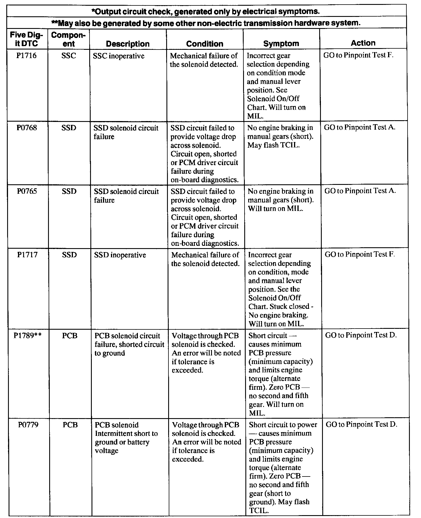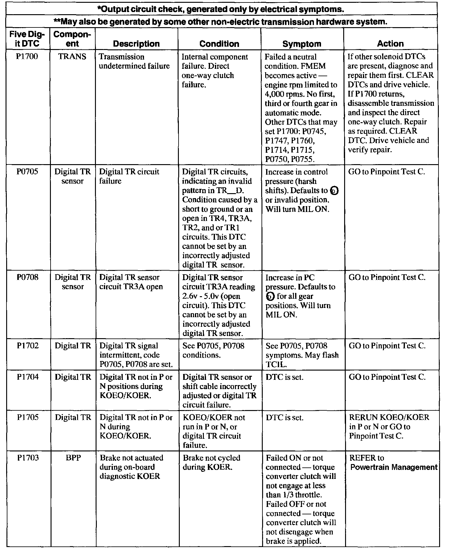 Trouble Code Descriptions