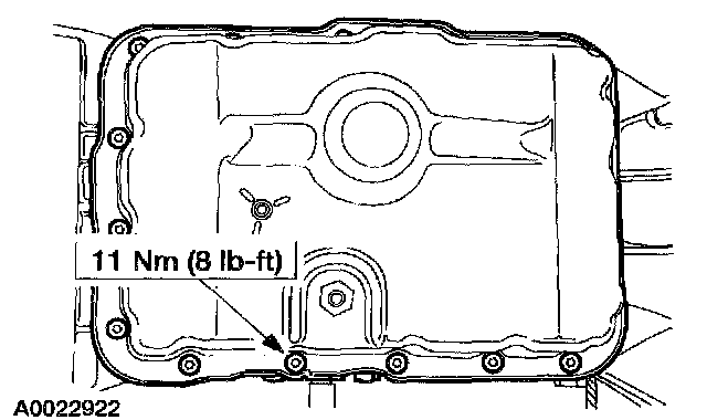 11. Install the transmission fluid pan and gasket and loosely install the screws.