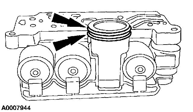 7. Install new O-ring seals on the solenoid body connector. Lubricate the O-ring seals with clean automatic transmission fluid.