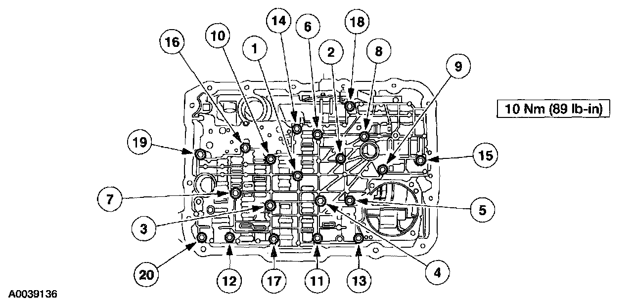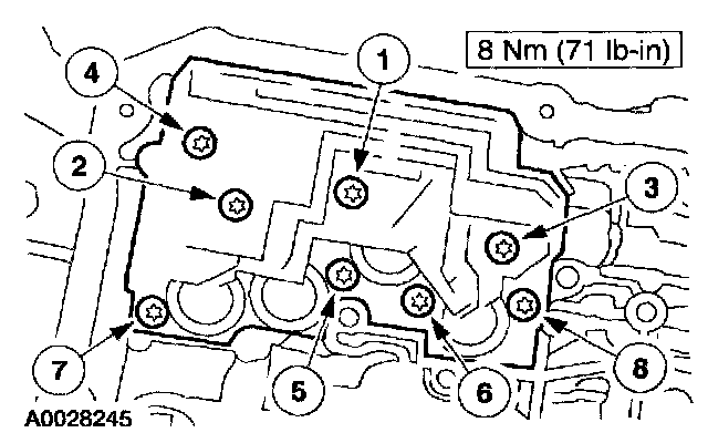 Install the solenoid body. Tighten the bolts in sequence shown.
