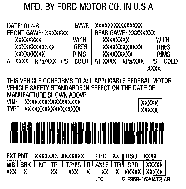 The Vehicle Certification (VC) label is located in the driver doorjamb. The first two digits of the axle code indicate the rear axle and the third digit refers to the front axle, if so equipped.