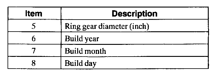 The axle identification tag identifies a particular axle design, a specific ratio, and if it is a conventional or limited slip (Traction-Lok) type. In addition, the plant code will not change as long as that particular axle assembly never undergoes an external design change. If, however, an internal design change takes place during the production life of the axle and that internal change affects parts interchangeability, a dash and numerical suffix is added to the plant code. This means that as an assembly both axles are interchangeable; however, internally they are different. Therefore, each requires different internal parts at the time of repair.