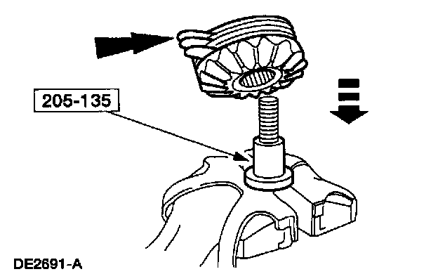 9. CAUTION: Use the same pinion bearings and drive pinion bearing adjustment shim from the drive pinion bearing adjustment shim selection procedure for final assembly.