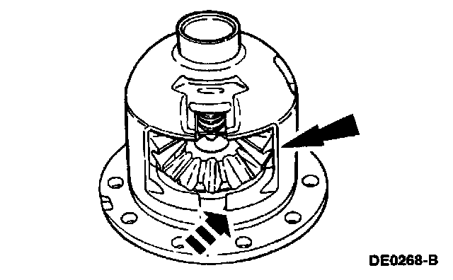 NOTE: Apply a light coating of grease to the differential bearing shim to help hold in place.