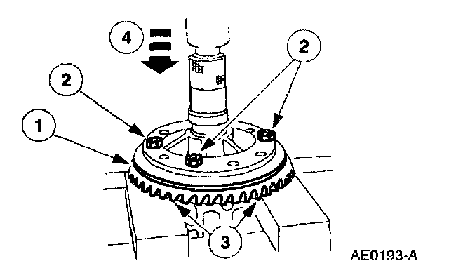 2 Hand start three bolts to align the holes in the differential ring gear and the differential case.