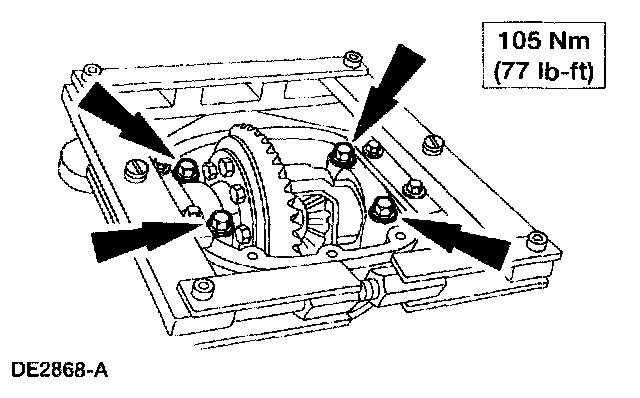 Install the differential bearing caps in their original locations and positions and tighten the bolts.