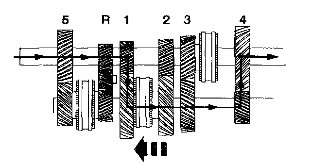 ^ The reverse idler gear drives the reverse gear on the countershaft.