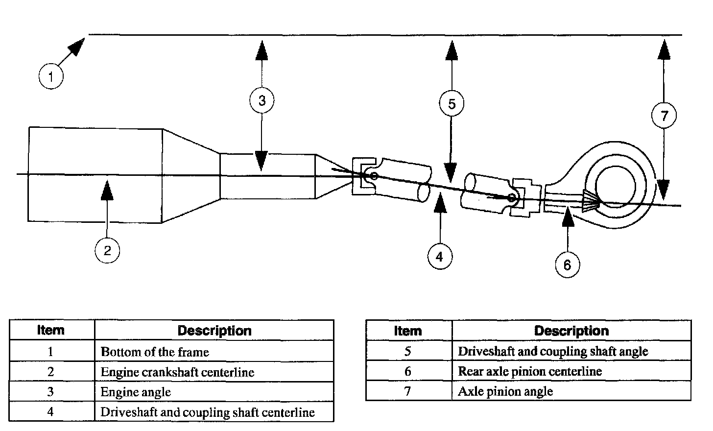 ^ A vibration during coastdown from 72 to 56 km/h (45 to 35 mph) is often caused by an excessive U-joint angle at the axle (pinion nose downward).