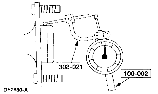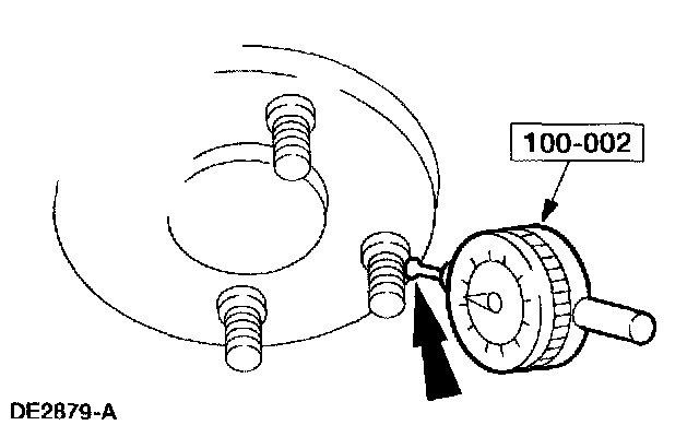 1. Position the special tools to the pilot, as close to the hub or axle flange face as possible. Zero the indicator to allow the pointer to deflect either way.