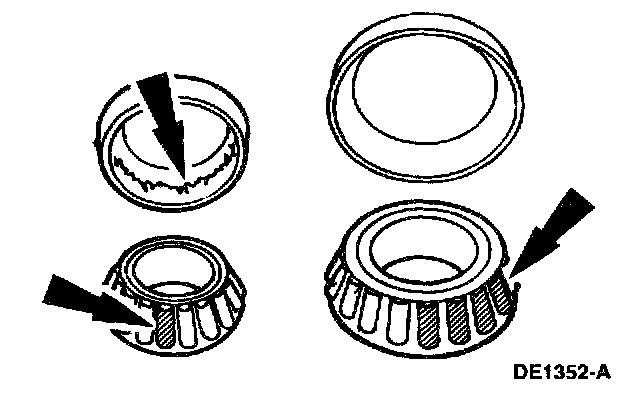A wheel bearing noise can be mistaken for a pinion bearing noise. On 4x2 vehicles, check the wheel bearing for a spalled cup, and spalled/damaged rollers. Install a new wheel bearing if any of these concerns are detected.