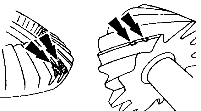 Clean the gear tooth nick or ridge with a small grinding wheel. If the damaged area is larger than 3.2 mm (1/8 inch), install a new gearset.