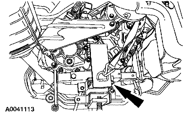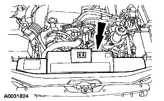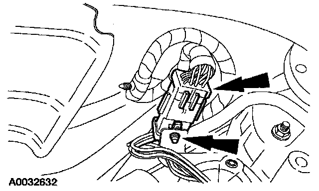 1 Disconnect the air conditioning line from the bracket, if equipped.