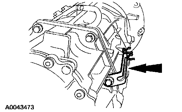 17. Lower the transmission jack down just enough to access the upper transfer case to transmission bolts, including the bolt retaining the fuel line bracket. Position the bracket out of the way.