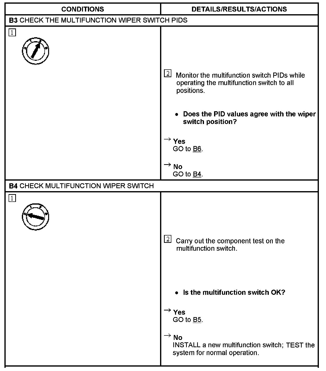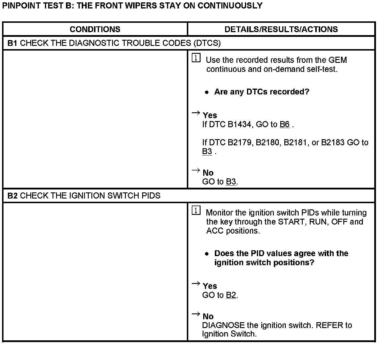 PINPOINT TEST B: THE FRONT WIPERS STAY ON CONTINUOUSLY