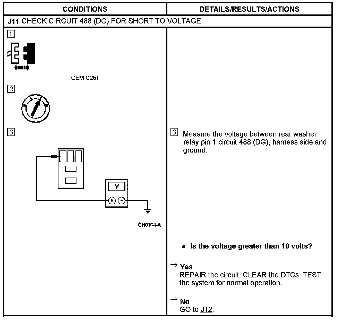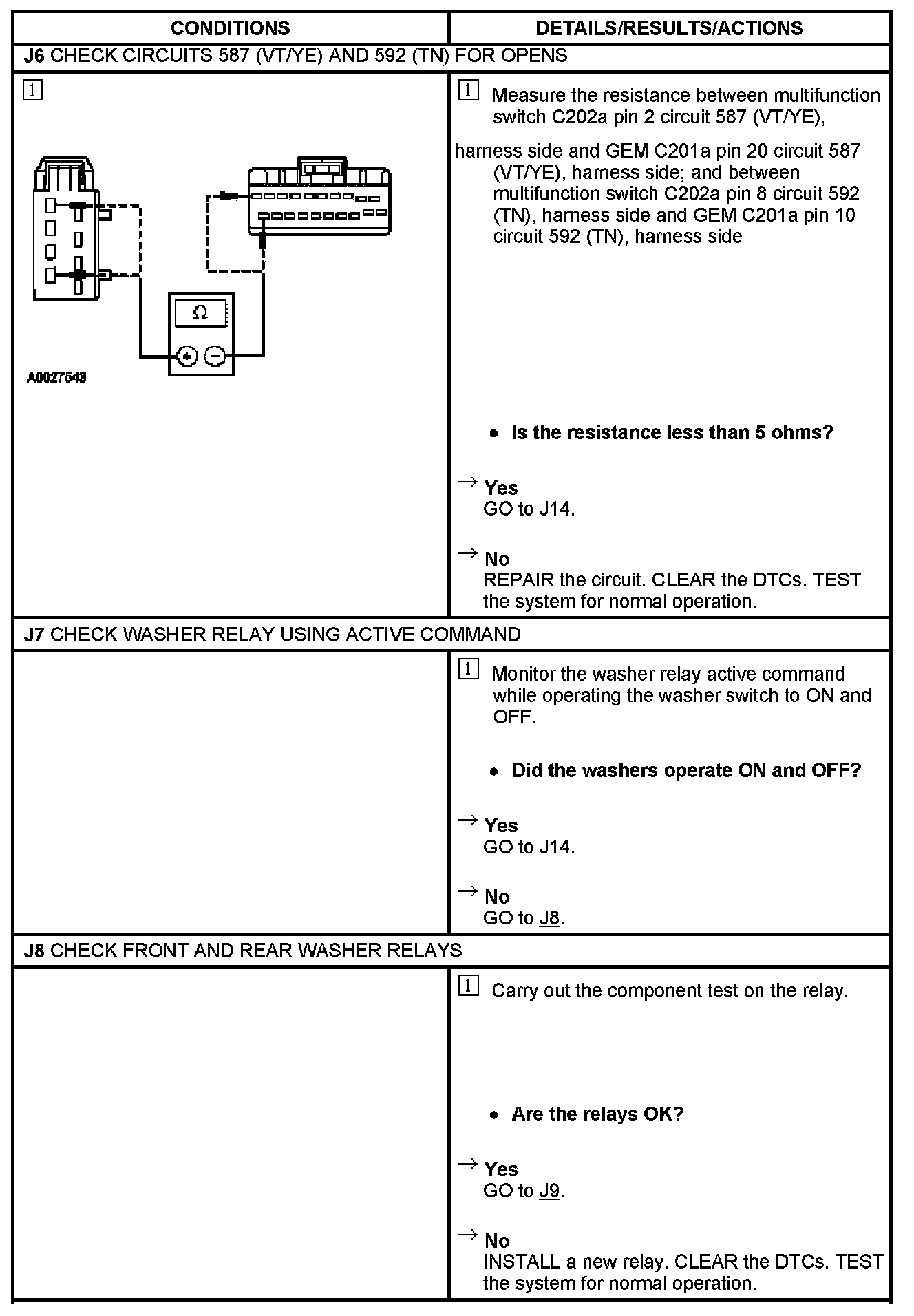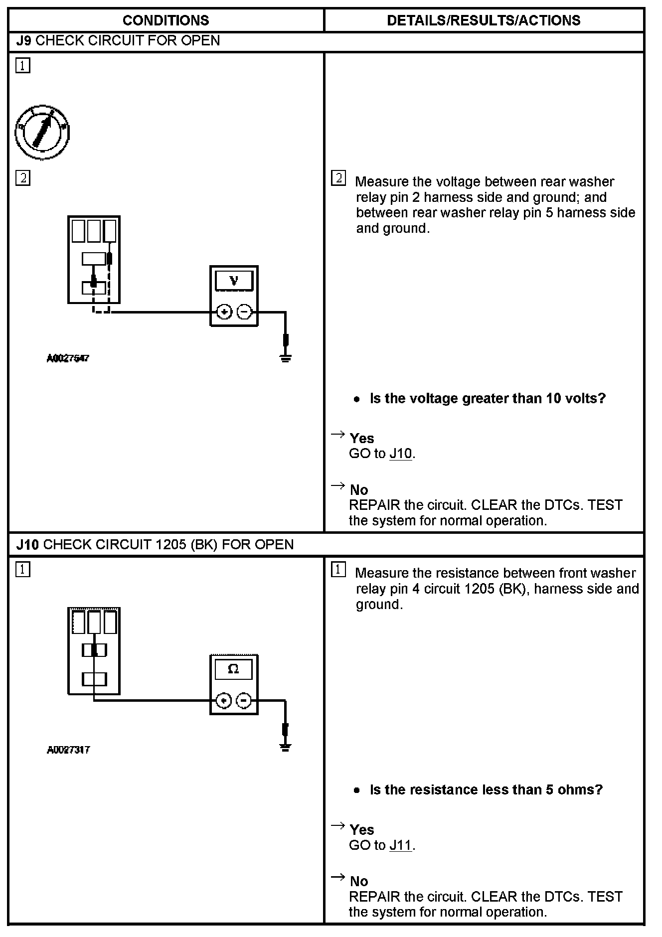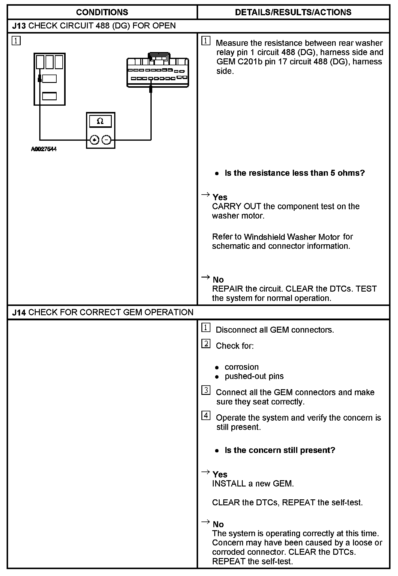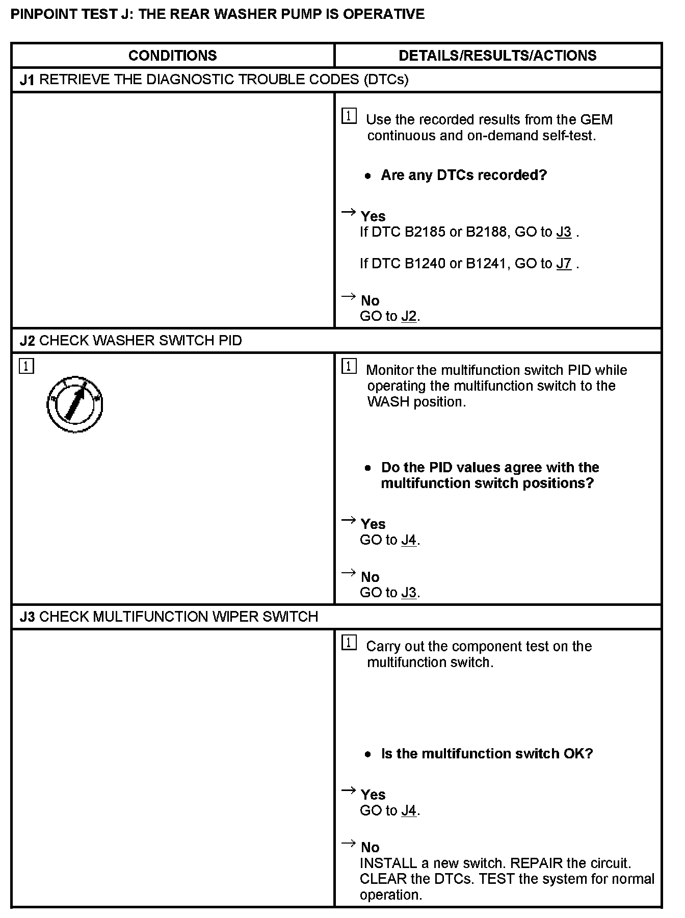 PINPOINT TEST J: THE REAR WASHER PUMP IS OPERATIVE