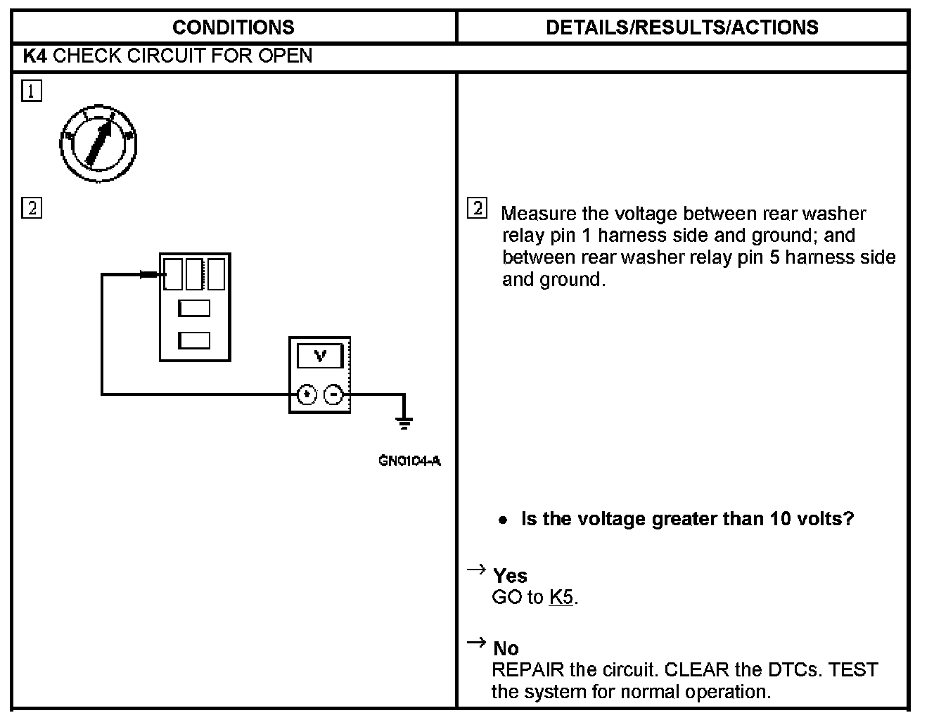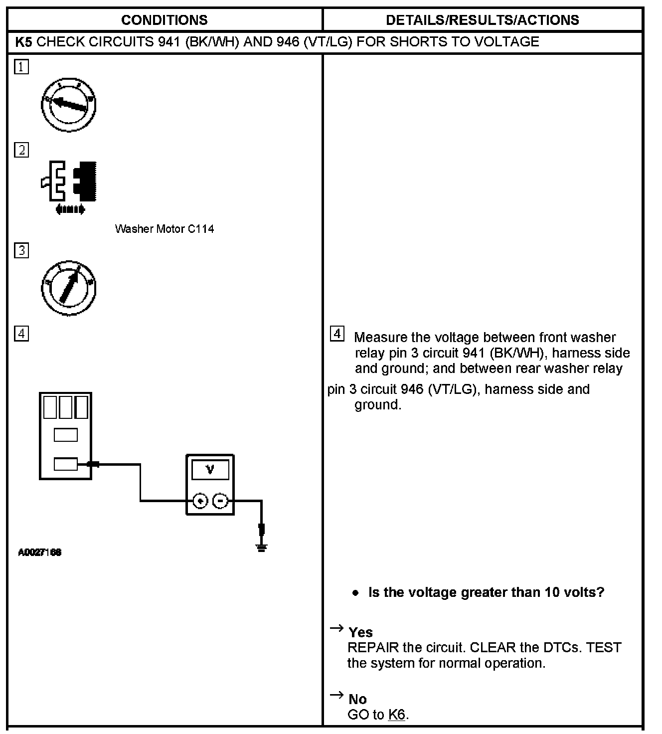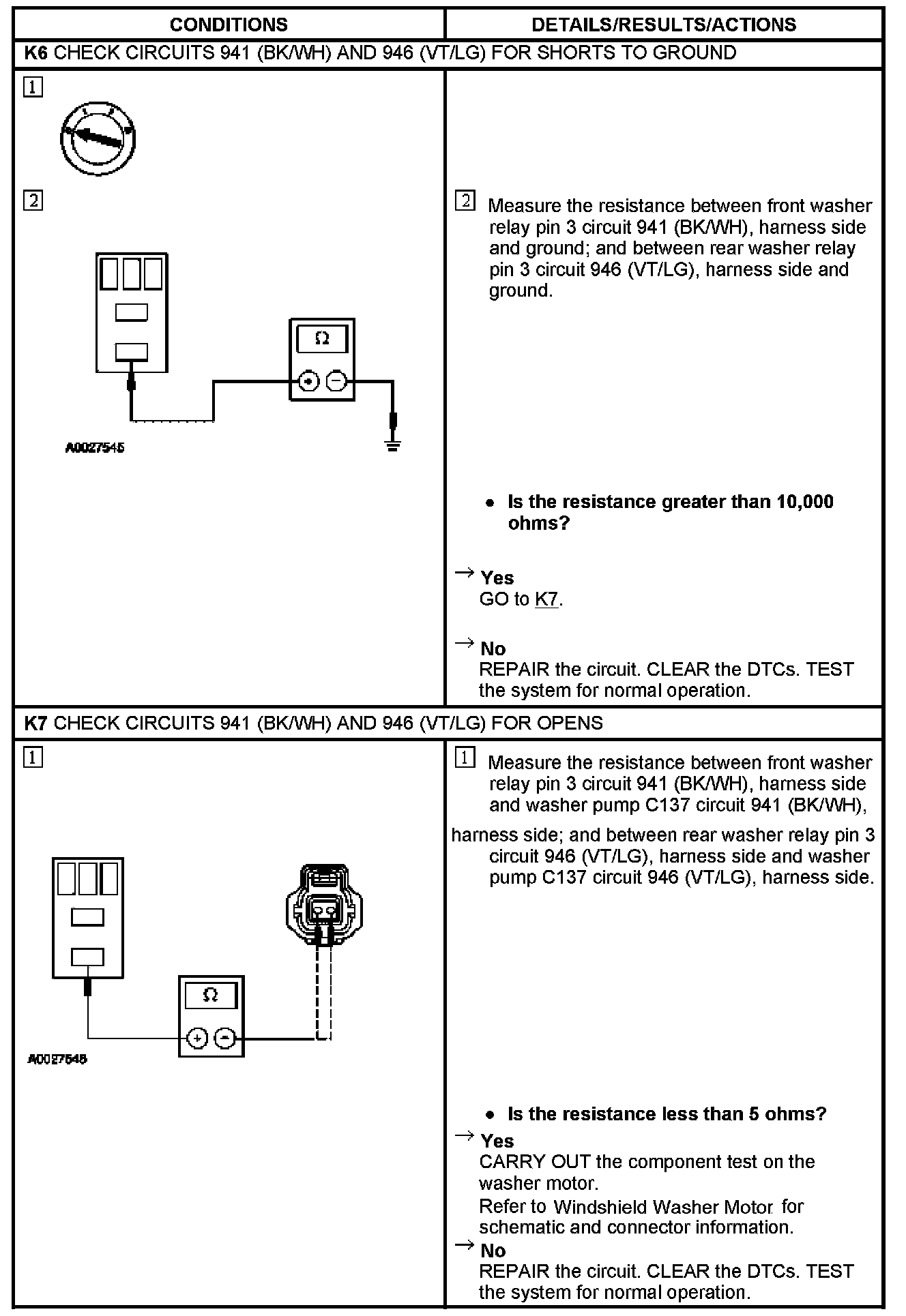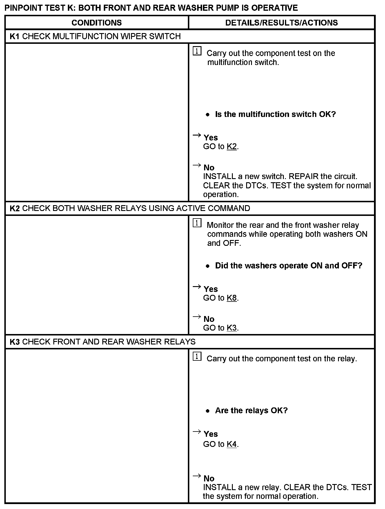 PINPOINT TEST K: BOTH FRONT AND REAR WASHER PUMP IS OPERATIVE