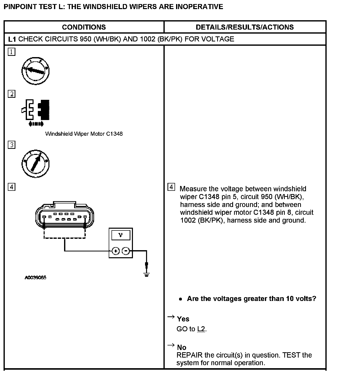PINPOINT TEST L: THE WINDSHIELD WIPERS ARE INOPERATIVE