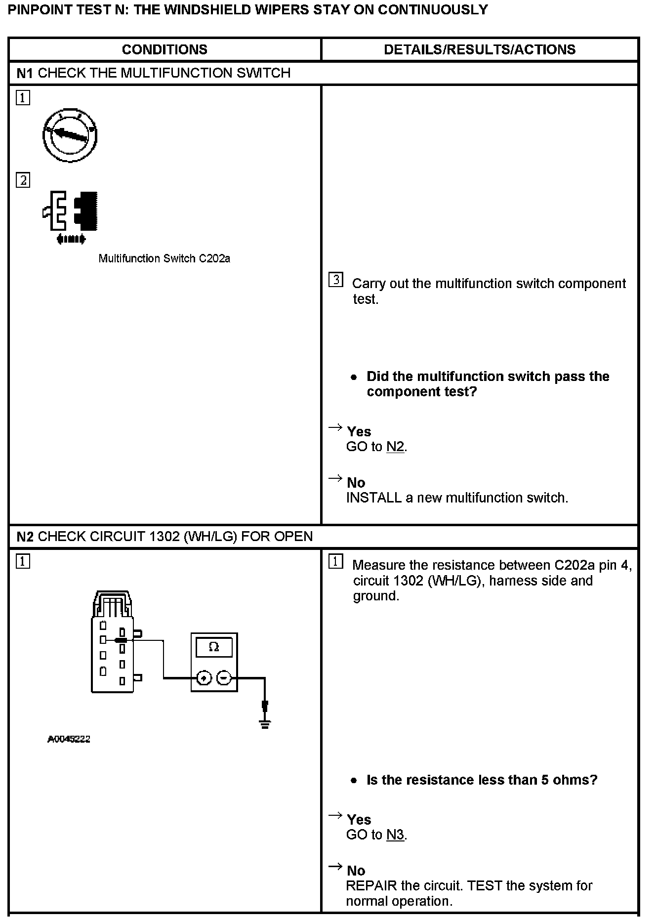 PINPOINT TEST N: THE WINDSHIELD WIPERS STAY ON CONTINUOUSLY