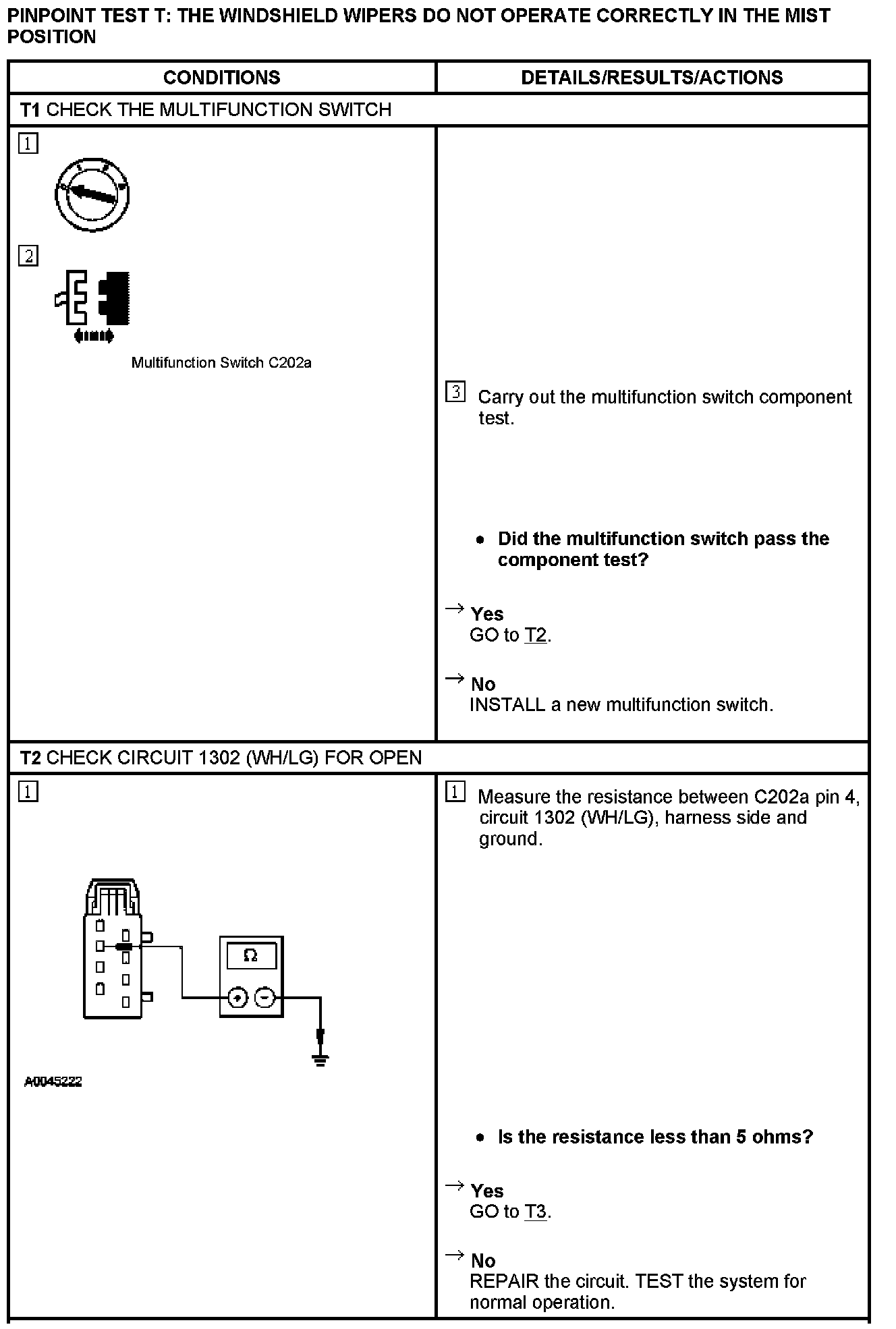 PINPOINT TEST T: THE WINDSHIELD WIPERS DO NOT OPERATE CORRECTLY IN THE MIST POSITION