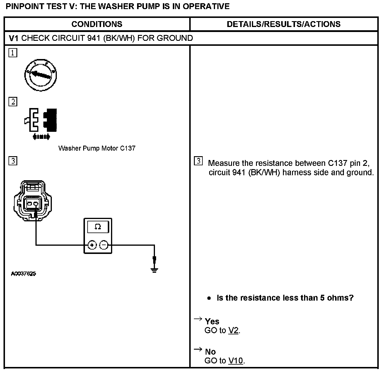 PINPOINT TEST V: THE WASHER PUMP IS IN OPERATIVE