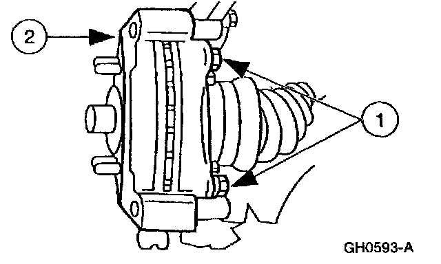 1. Remove and discard the two front disc brake caliper support bracket bolts.