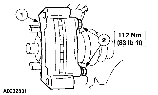 1. NOTE: Use new brake caliper support bracket bolts when installing the brake caliper support bracket.