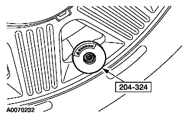 6. When the message center displays "TRAIN LEFT FRONT TIRE", place the magnet on the valve stem of the LF tire pressure sensor. The horn will sound briefly to indicate that the tire pressure sensor has been recognized by the TPMS module.