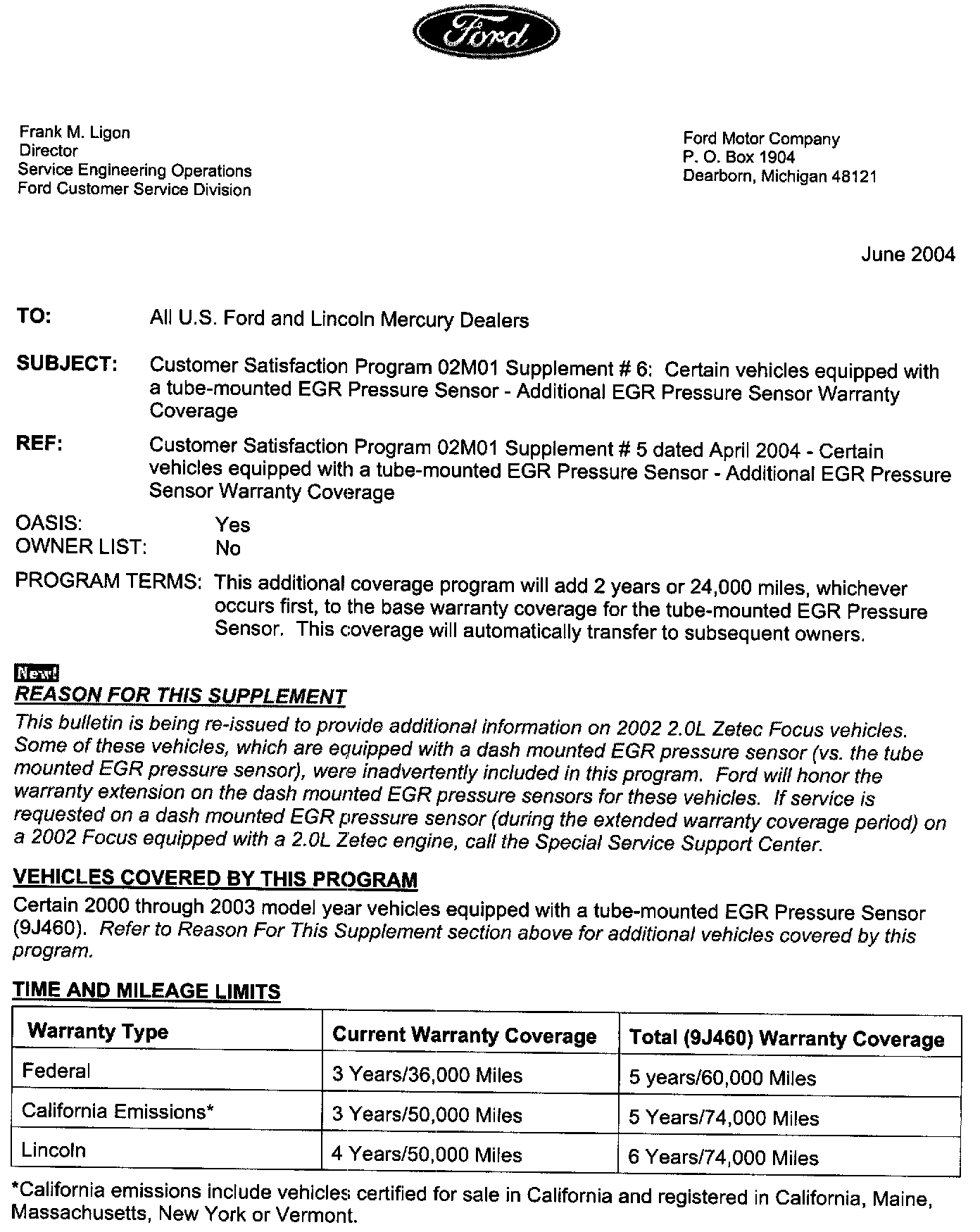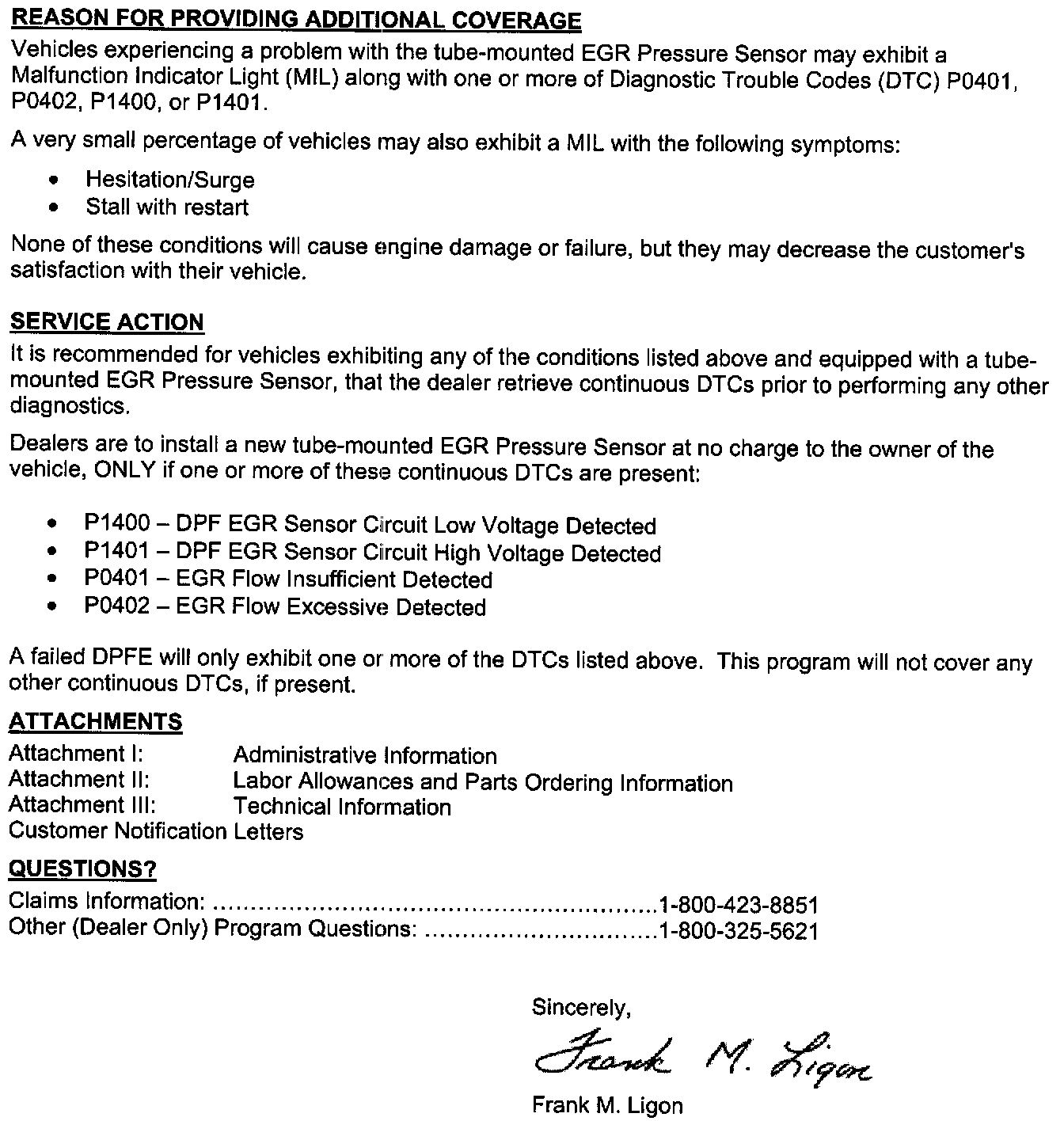 Recall - Tube Mounted EGR Pressure Sensor Defect