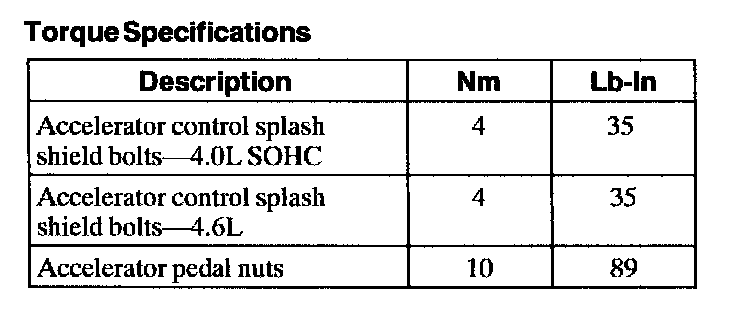 Accelerator Pedal: Specifications