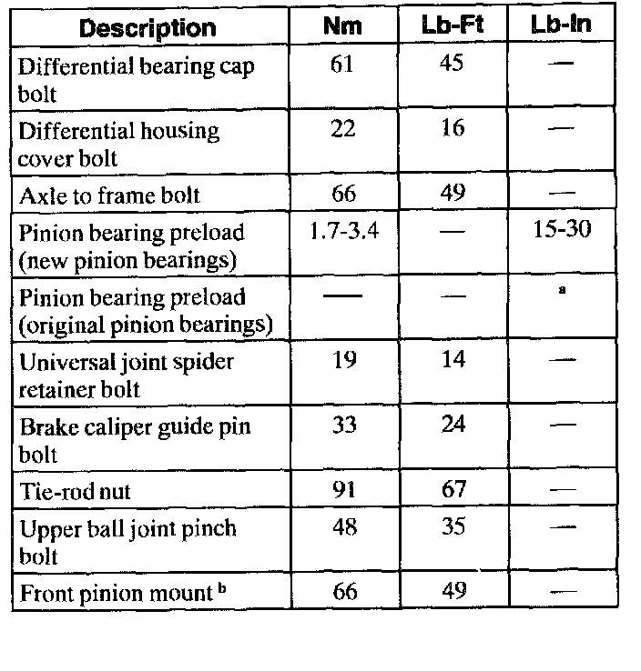 Torque Specifications