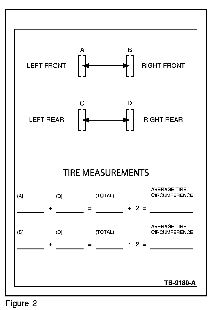 9. Calculate the average of the circumference of the two (2) front tires and calculate the average of the circumference of the two (2) rear tires. (Figure 2)