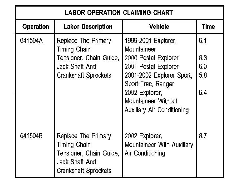 Some vehicles equipped with the 4.0 SOHC (single over-head cam) engine may exhibit a primary timing chain rattle noise. The noise is heard during hot and cold engine operation (but mainly heard on cold engines) under acceleration, typically at 2400-2500 RPM. To verify concern, accelerate in 2nd gear between 2000 and 3000 RPM and listen for rattle noise that sounds similar to spark knock. This may be caused by the primary timing chain tensioner system.