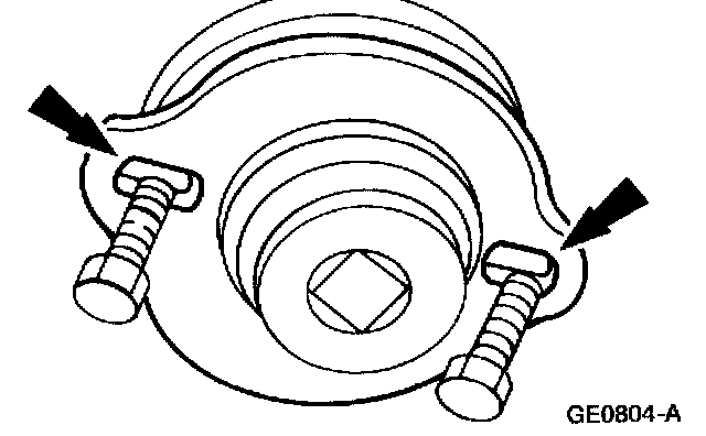 6. Align the holes on the clamp plate with the holes in the pinion flange and install the bolts. Snug the bolts evenly.