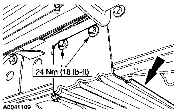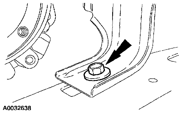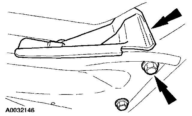 9. Remove the RH and LH side heat shield-to-crossmember bolts.