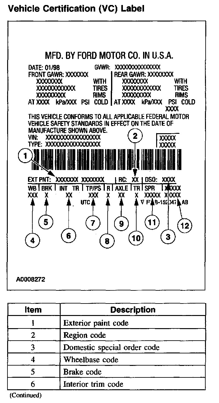 VEHICLE CERTIFICATION LABEL REFERENCE