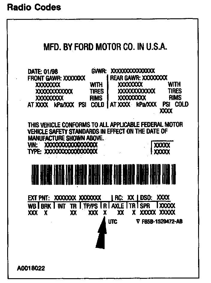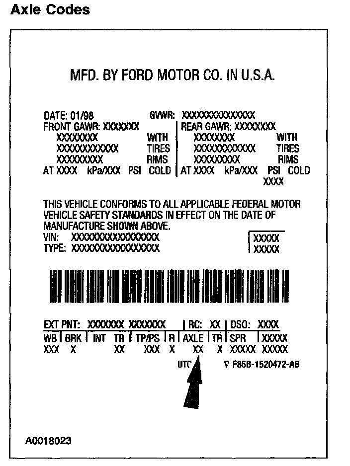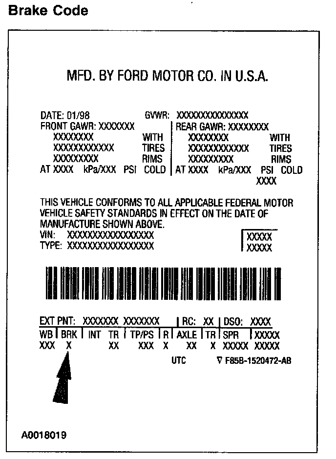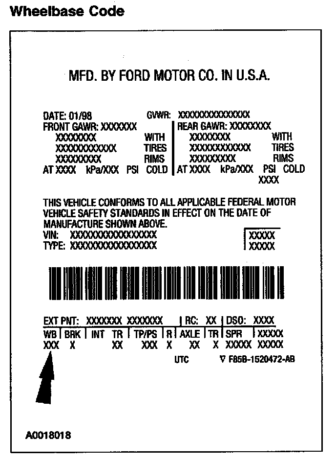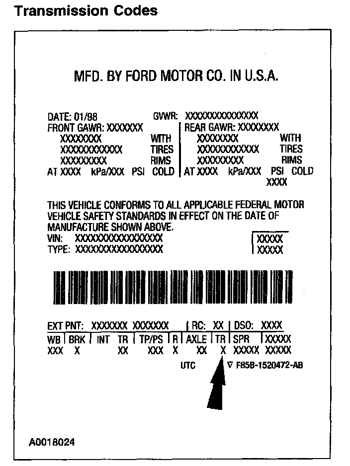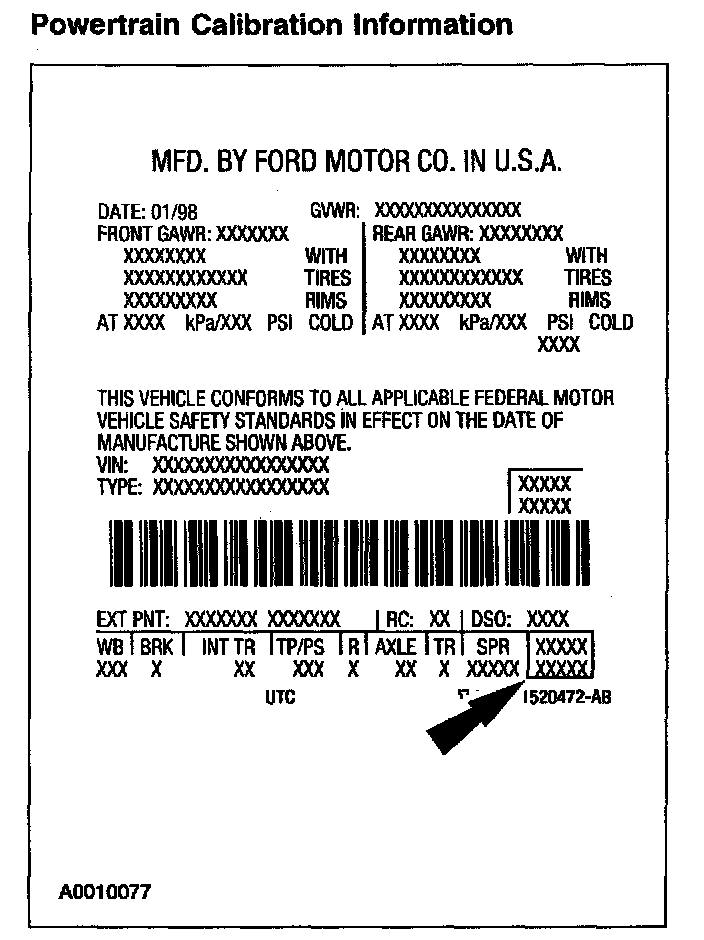 Powertrain calibration information is printed in the lower right corner of the Vehicle Certification Label. Only the base calibration information is printed. Revision levels will not appear, however, they can be found in On Line Automotive Service Information System (OASIS).