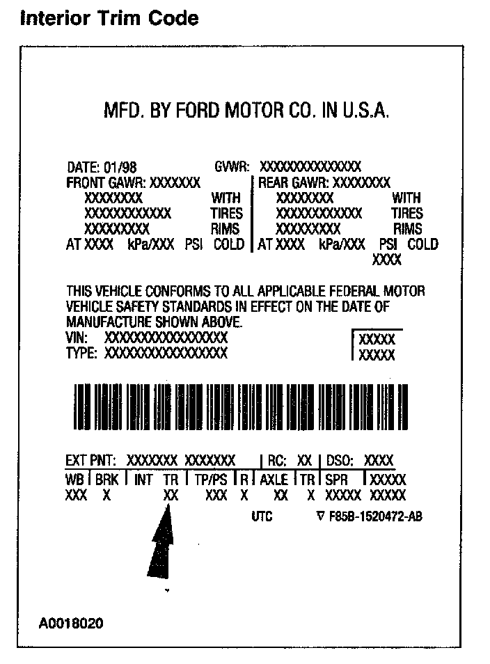 Interior trim codes are listed as a two part code. The first code listed indicates the interior trim code. The second code listed indicates the interior trim color.