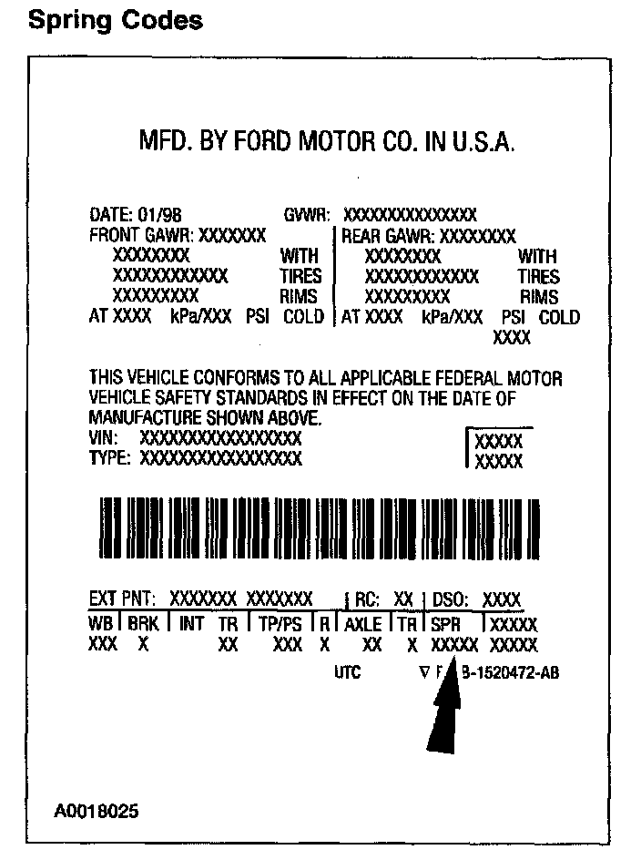 Spring codes are listed as a two part code. The first code identifies the front springs. The second code identifies the rear springs.
