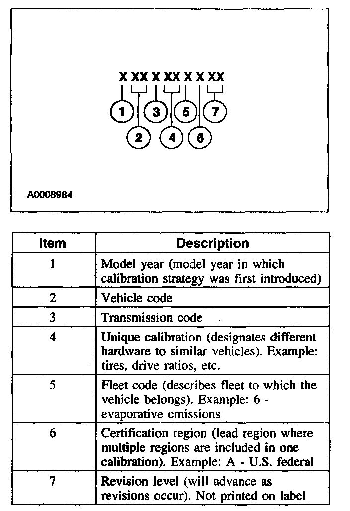 NOTE: Powertrain calibration information is limited to a maximum of five characters per line on the Vehicle Certification Label. Because of this, calibration identification consisting of more than five characters will wrap to the second line on the VC label.