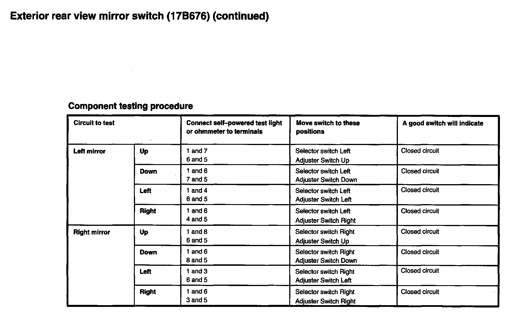 Power Mirror Switch: Testing and Inspection