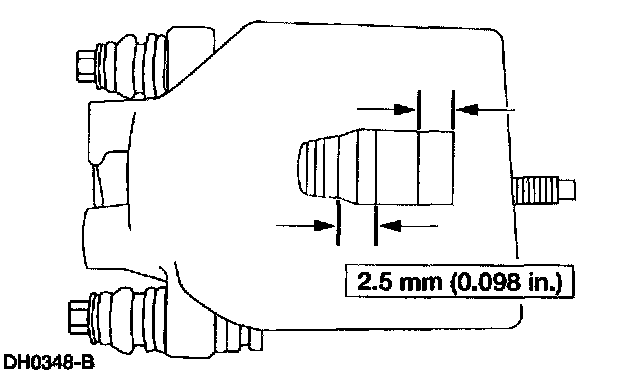 2. CAUTION: Install new pads if worn to or past the specified thickness above the metal backing plate or rivets. Install new pads in complete axle sets.